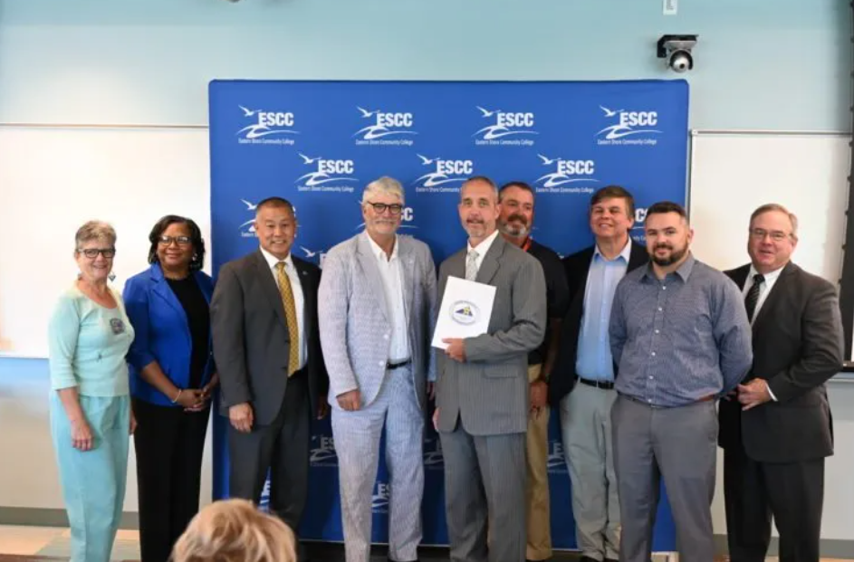 Eastern Shore Community College hosted Commissioner Gary Pan, Director Patricia Morrison , and members of their leadership teams for the signing of a Registered Apprenticeship agreement with Peraton Corp.