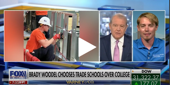 Colonial Webb Contractors HVAC service apprentice Brady Woodel discusses his trade school experience on ‘Varney & Co.’